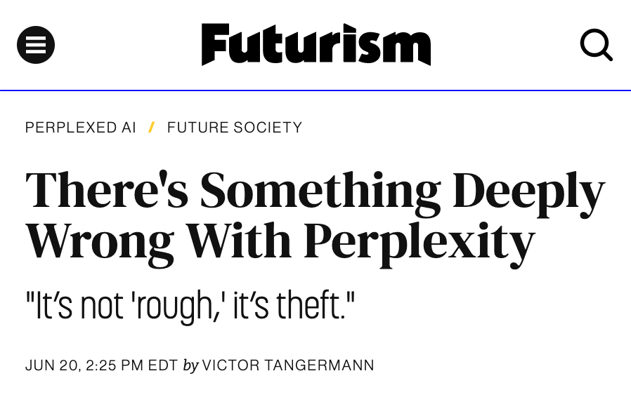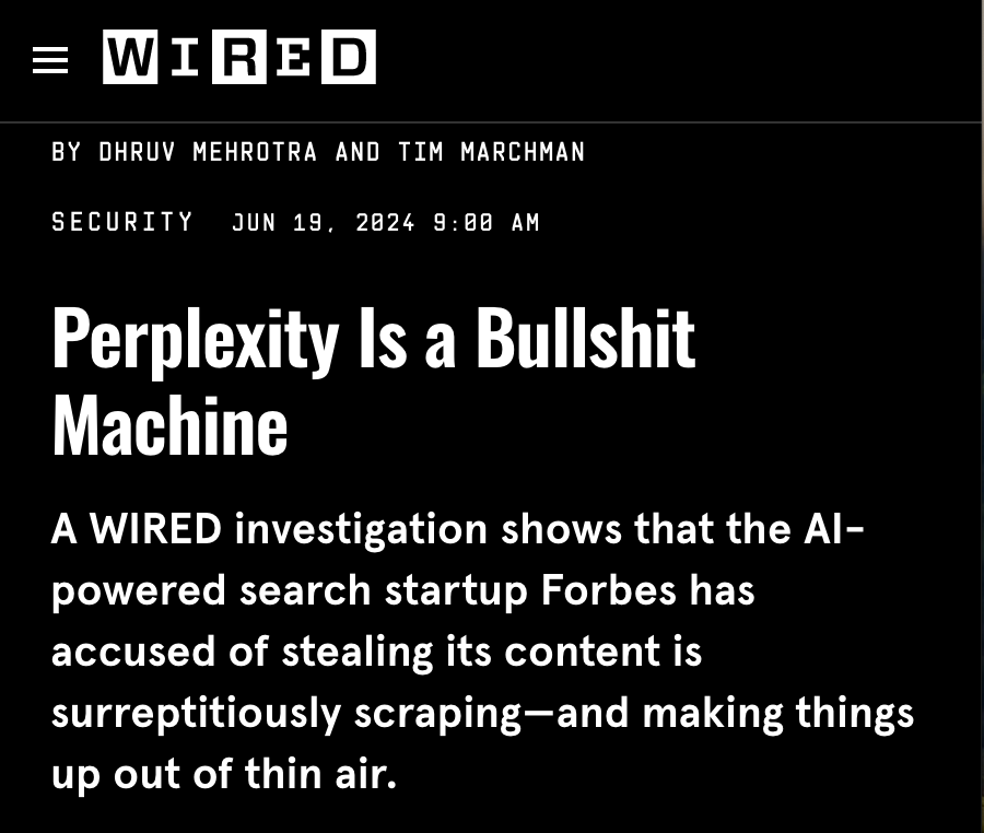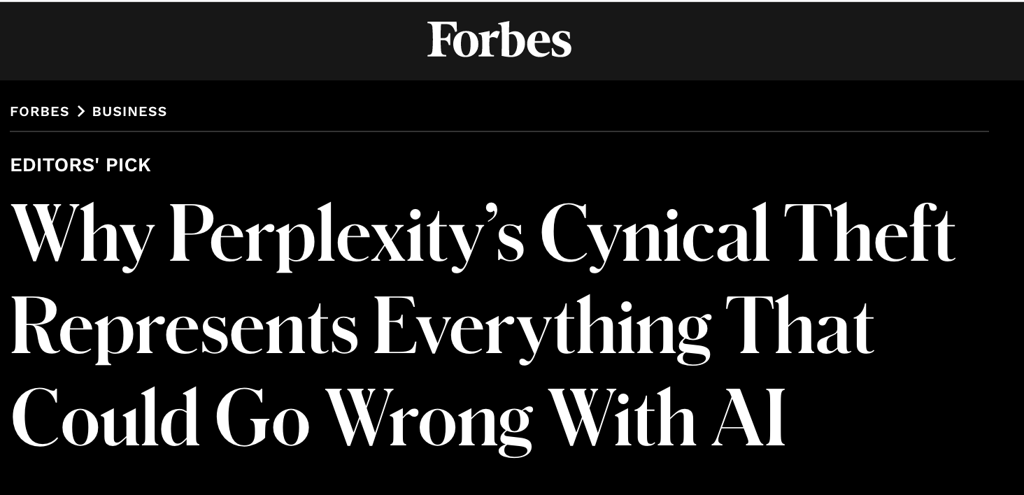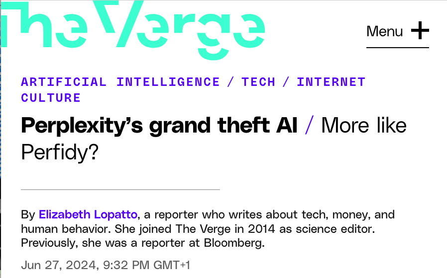 Sticking with the format to begin with, Jenny’s calling out Perplexity as a Techin’ Eejit as it’s in the news for being in trouble with the news, accused of plagiarism and unethical scraping of web content. The coverage has been unforgiving, to say the least.